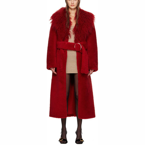Red Shearling Coat Luxury Oem Custom Fur Jacket Comfortable Warm Winter Women Outwear 2023