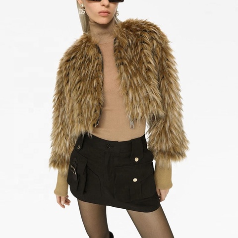 Luxury Oem Custom Front Zipper Crop Top Imitation Fur Jacket Comfortable Warm Winter Women Outwear 2023