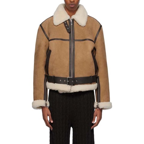 Tan Paneled Shearling Jacket Luxury Oem Custom Fur Jacket Comfortable Lambskin Suede Jacket