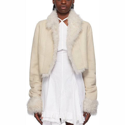 White Short Shearling Jacket Luxury Oem Custom Fur Jacket Comfortable Buffed Sheepskin Jacket