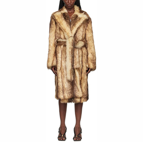 Beige Printed Faux-Fur Goat Hair Faux-fur Coat Luxury Oem Custom Fur Jacket Comfortable Warm Winter Women Outwear 2023