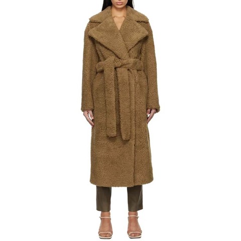 Khaki Shearling Coat Luxury Oem Custom Fur Jacket Comfortable Warm Camelwool- and Silk-blend Sherpa Coat Women Outwear 2023